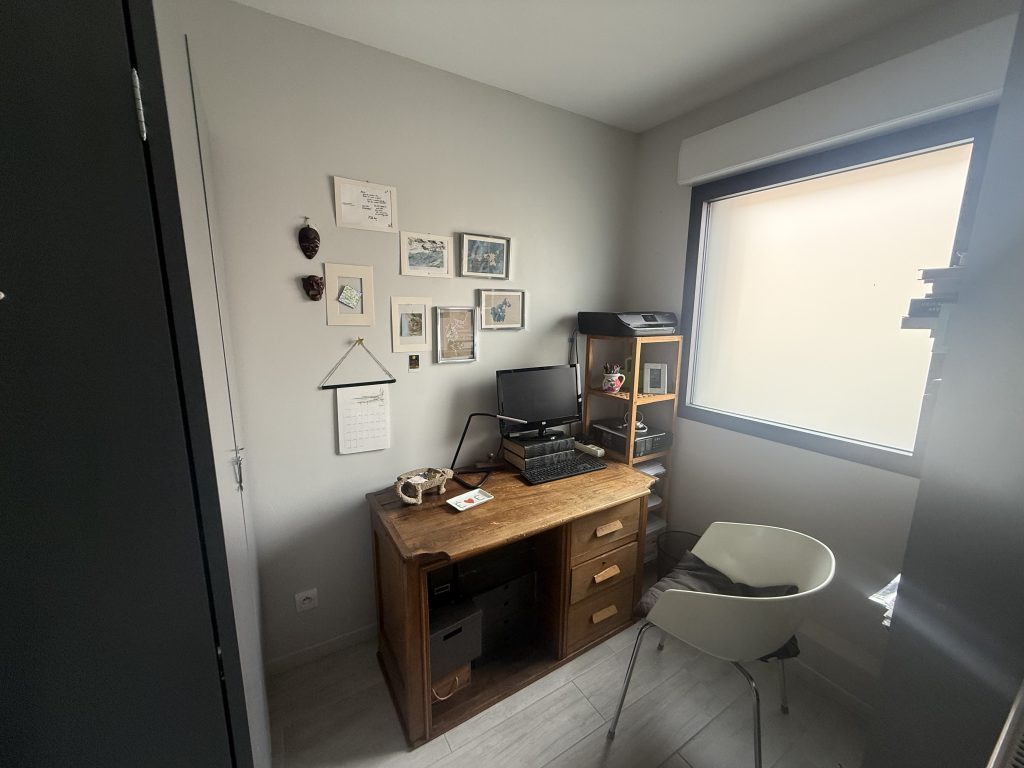 Dès l’entrée, vous serez séduit par une distribution harmonieuse comprenant un bureau en rez-de-chaussée ainsi qu’un WC suspendu avec espace de rangement. La pièce de vie, spacieuse et lumineuse, bénéficie de trois ouvertures offrant un accès direct à une agréable terrasse en bois, idéalement exposée plein sud.