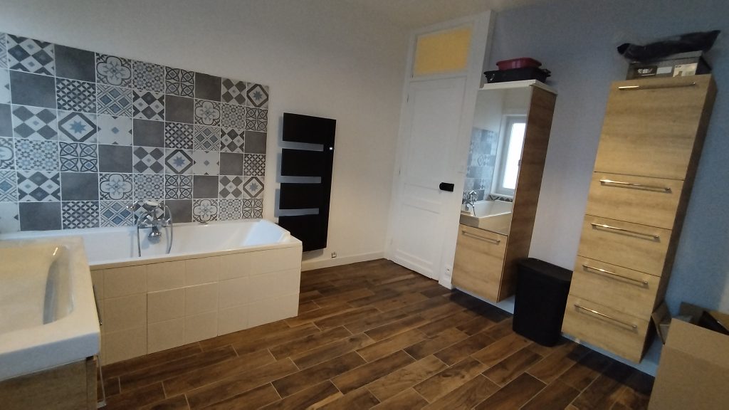 Elle se compose d’un hall d’entrée, doté d’un beau carrelage d’origine qui lui confère caractère et authenticité. Vous pourrez profiter d’une belle pièce de vie lumineuse, d’une cuisine fonctionnelle et de trois chambres confortables. Une grande salle de bain complète ce bien.