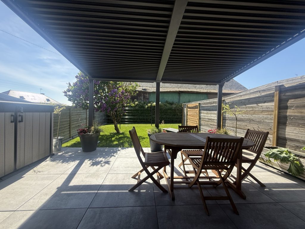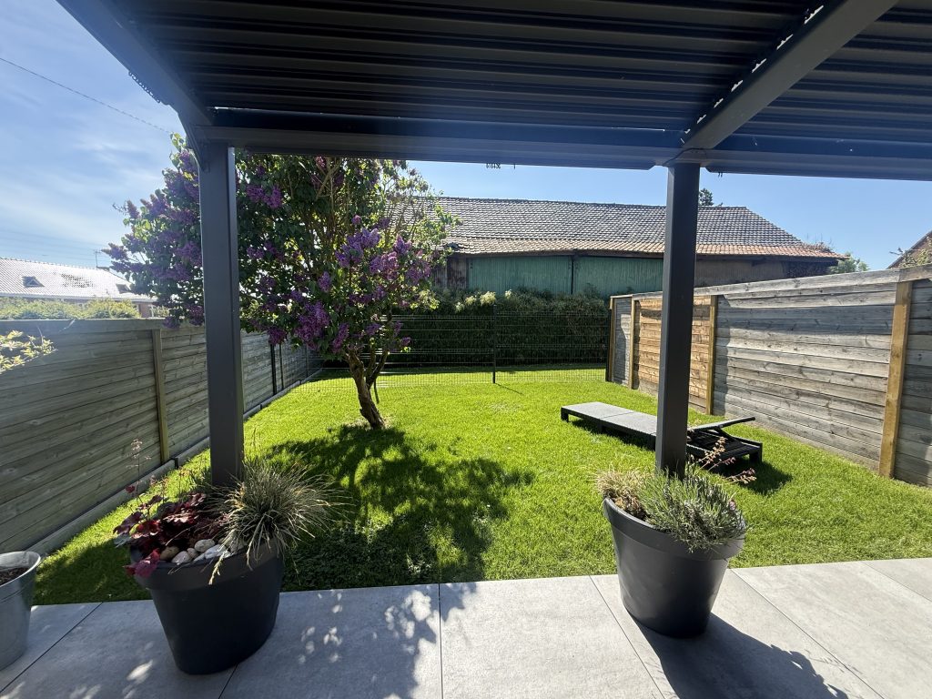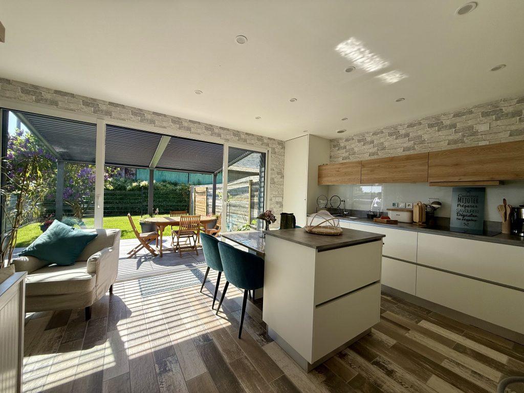 La pièce de vie, lumineuse et conviviale, s’ouvre directement sur une agréable terrasse équipée d’une pergola ajustable, idéale pour profiter des extérieurs en toute saison. Vous apprécierez également un magnifique jardin bien exposé, parfait pour les moments de détente.