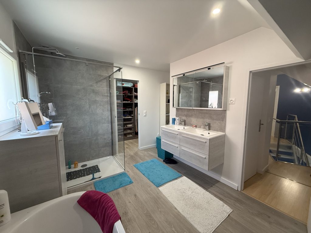 À l’étage, vous découvrirez quatre magnifiques chambres ainsi que deux salles de bains, dont l’une intégrant un dressing aménagé. Entièrement rénovée et décorée avec soin, la maison allie confort moderne et raffinement. Le jardin, arboré et fleuri tout au long de l’année, est entièrement clos, offrant intimité et sérénité.