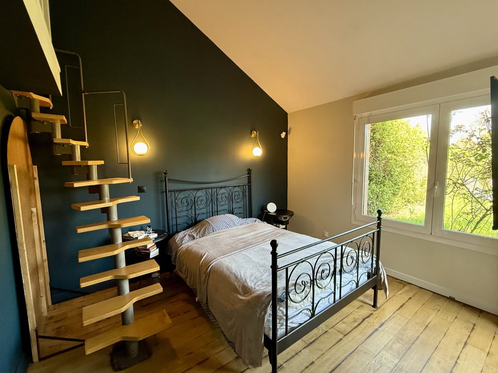 La maison offre 4 chambres, dont une belle suite en rez-de-chaussée avec salle de bain, dressing et mezzanine, apportant charme et fonctionnalité.