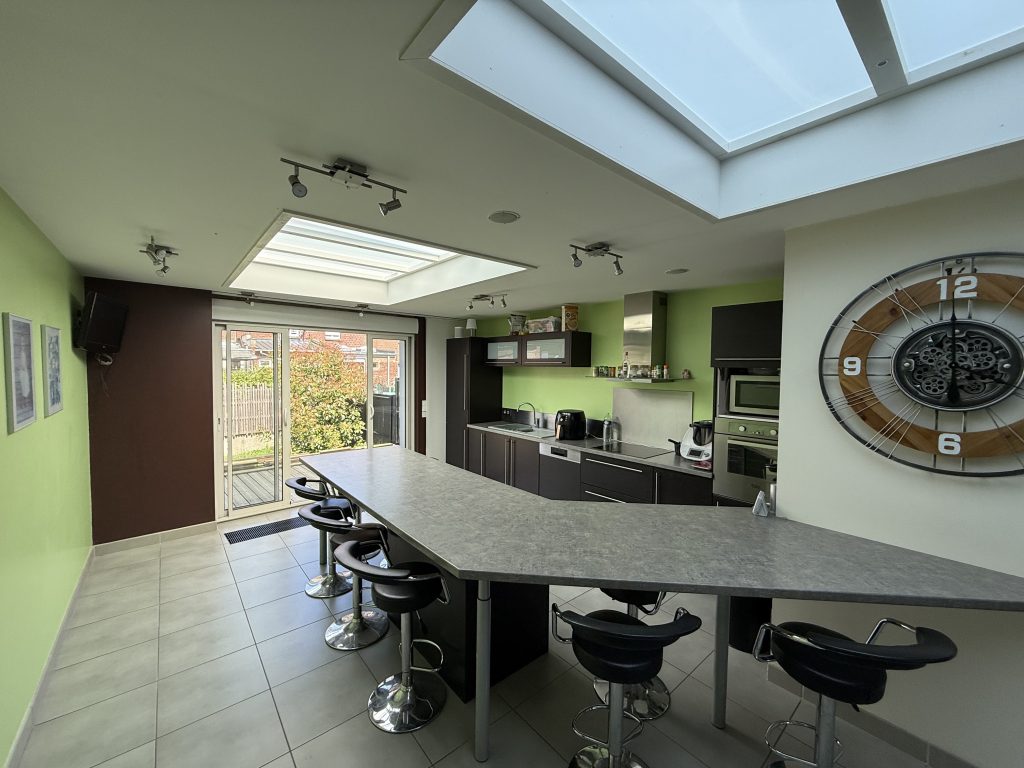 Le Chat Immobilier a le plaisir de vous présenter cette magnifique maison entièrement rénovée, du sol au plafond, y compris la toiture refaite à neuf. Idéalement située à deux pas de la Lys, elle offre un cadre de vie privilégié, à proximité immédiate du Prés du Hem, des écoles, du centre-ville, des transports en commun et de la gare.